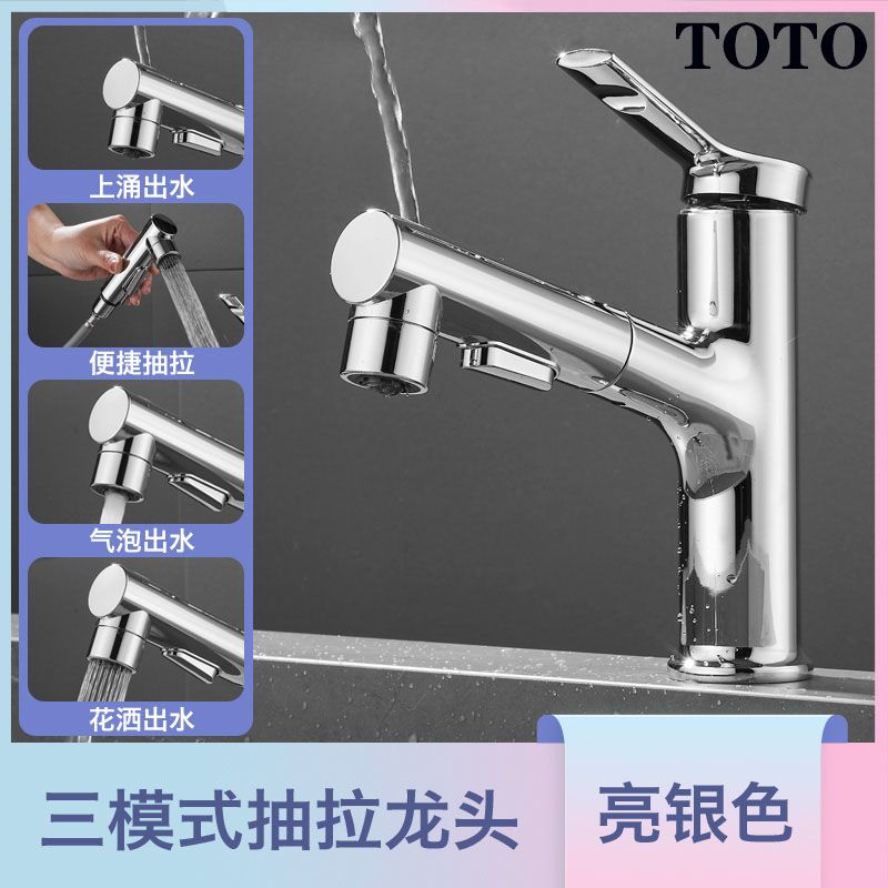 TOTO抽拉水龍頭TLG12303B洗手洗臉盆面盆台盆可旋轉冷熱水龍頭(05-N) 新品雙模切換可抽拉龍頭TLS093B0C(鍍鉻) 單獨龍頭不含下水器