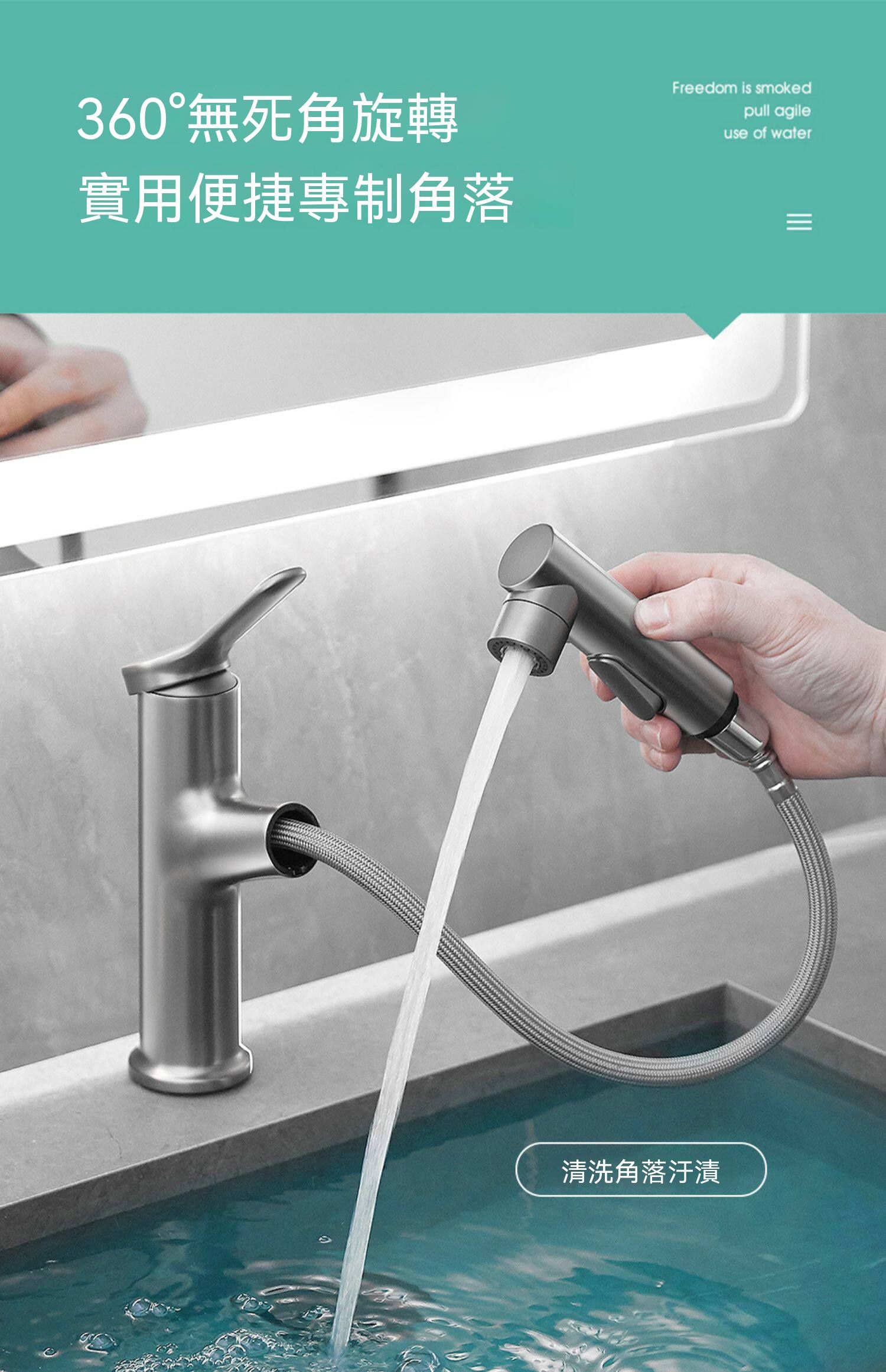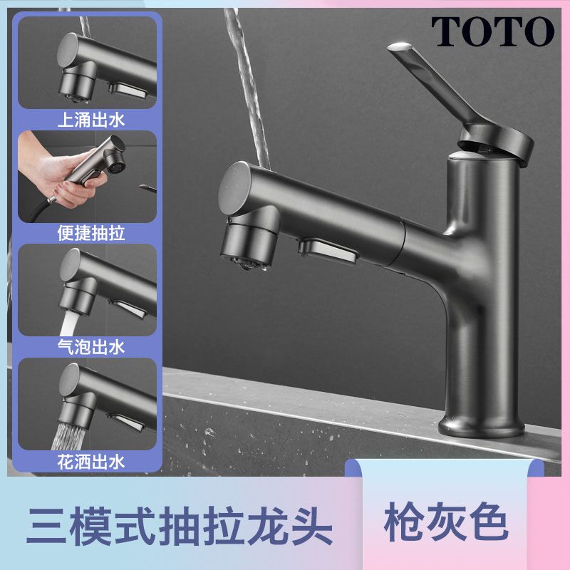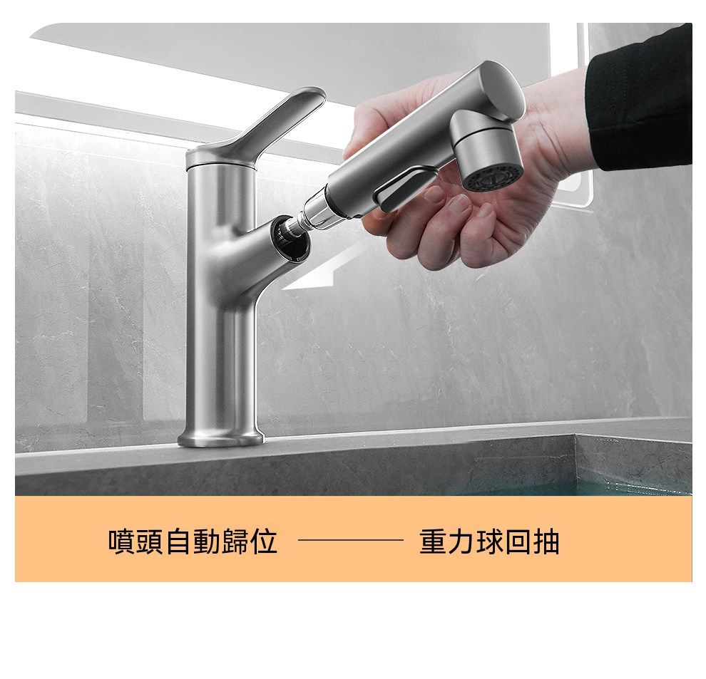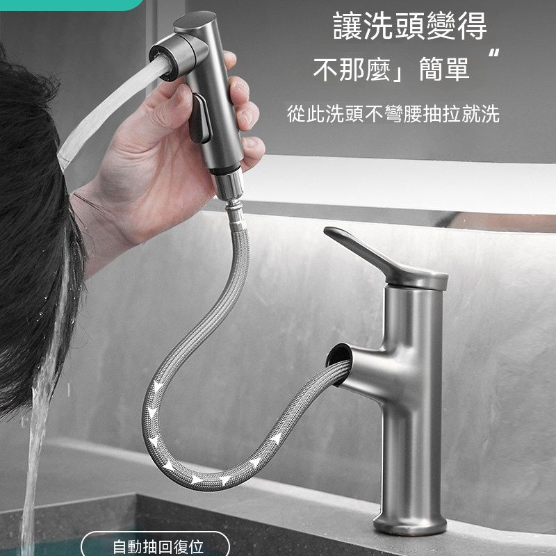 槍灰抽拉麵盆水龍頭