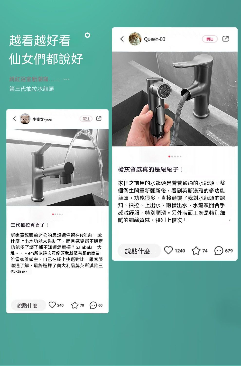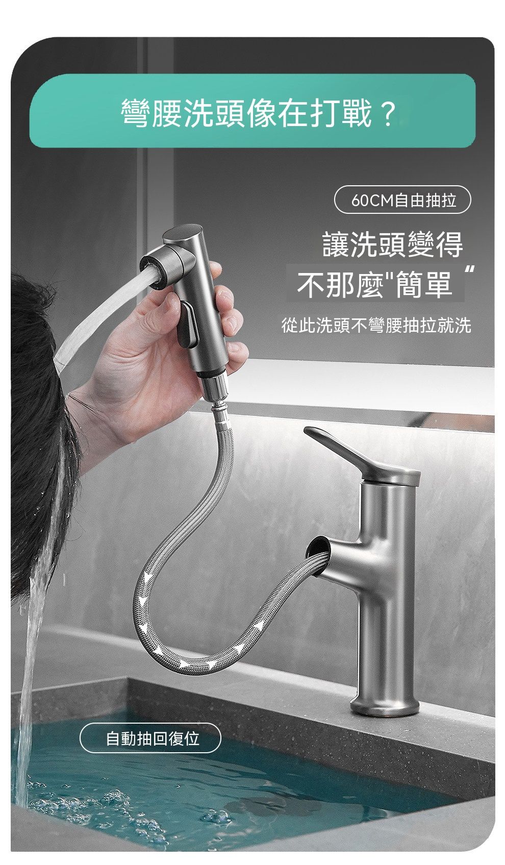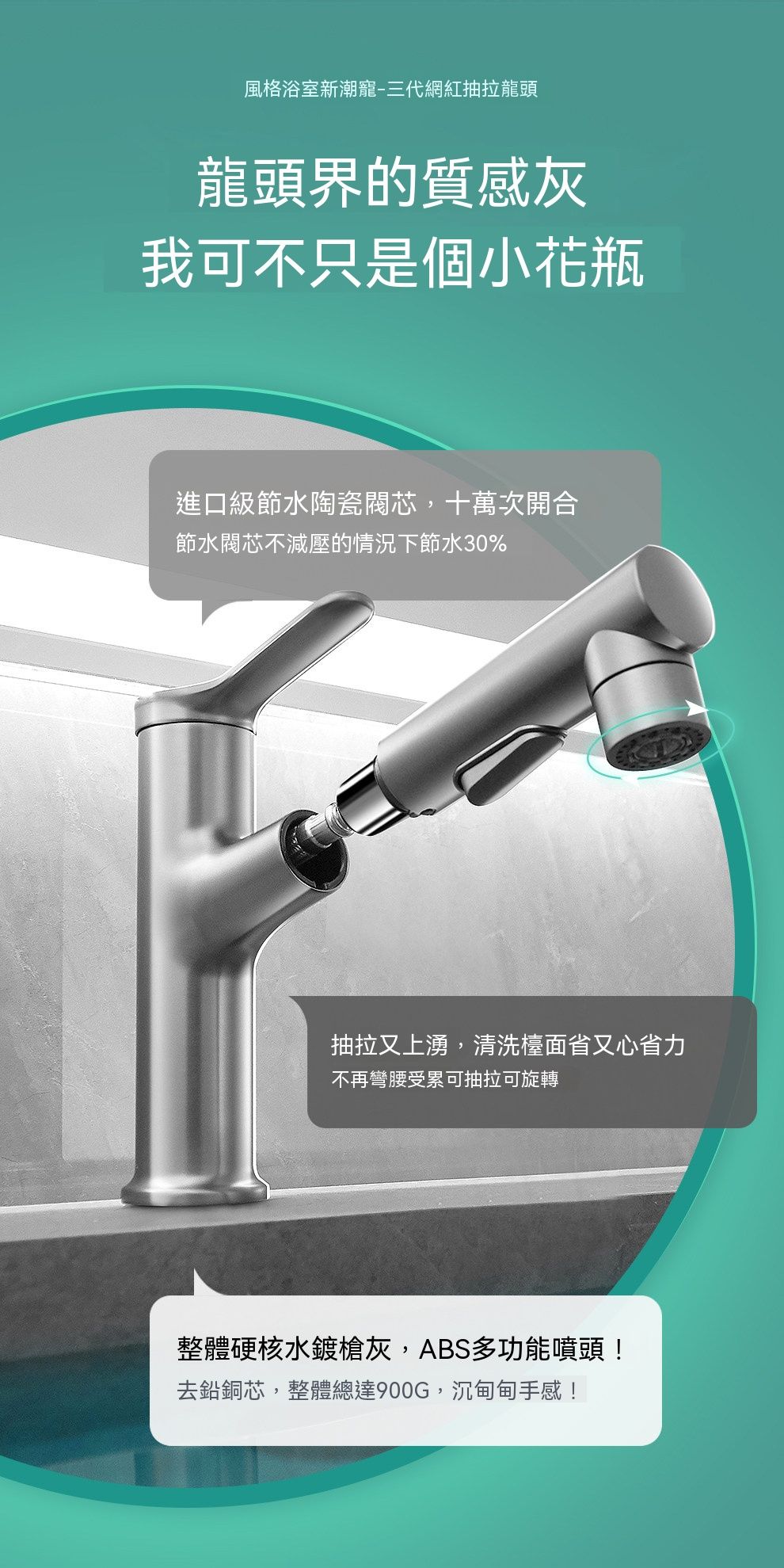 槍灰抽拉麵盆水龍頭