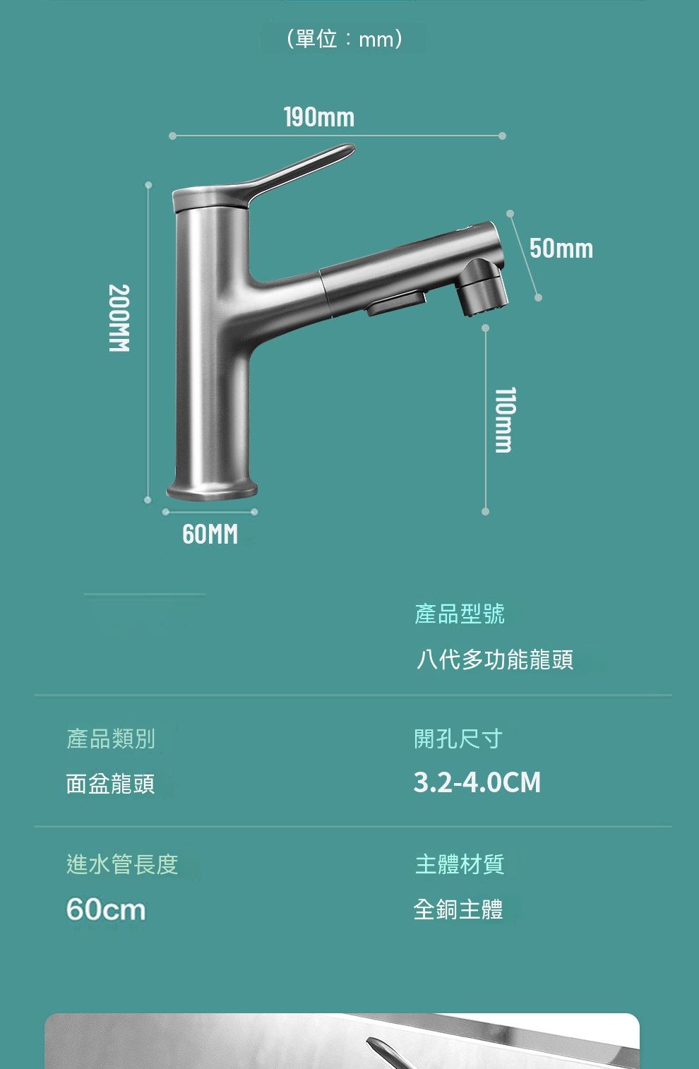銀色抽拉麵盆水龍頭